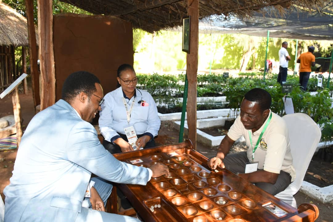 Mkurugenzi Mkuu wa Makumbusho ya Taifa, Dkt. Noel Lwoga akishiriki kucheza mchezo wa bao na Rais wa Bao Monday M. Likwepa wakati alipotembelea katika Maonyesho ya Kimataifa ya 46 ya Biashara maarufu kama Sabasaba yanayoendelea katika Viwanja vya Mwl. Julius Kambarage Nyerere jijini Dar es Salaam